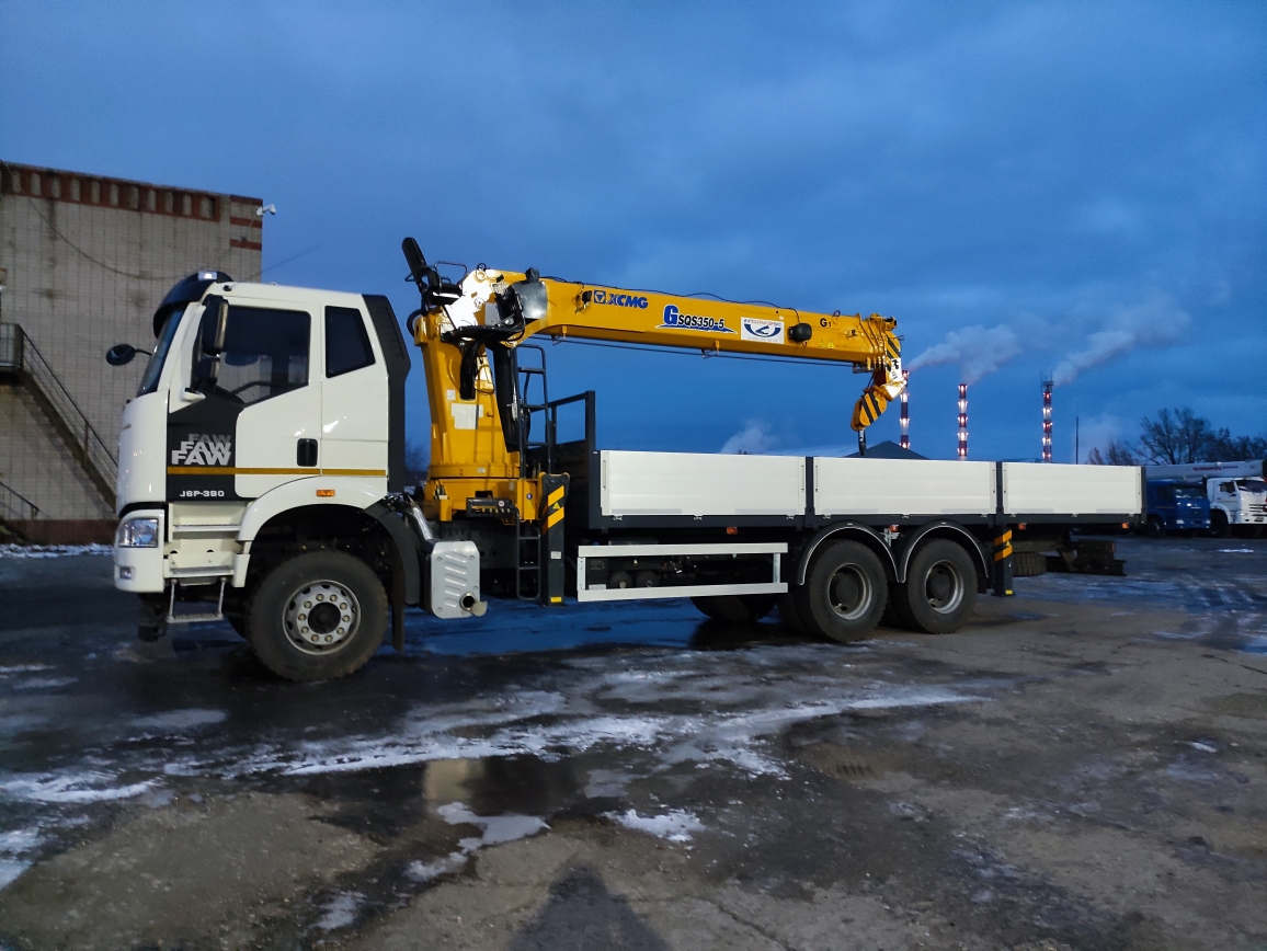 отгрузка FAW 3250 с КМУ XCMG 350