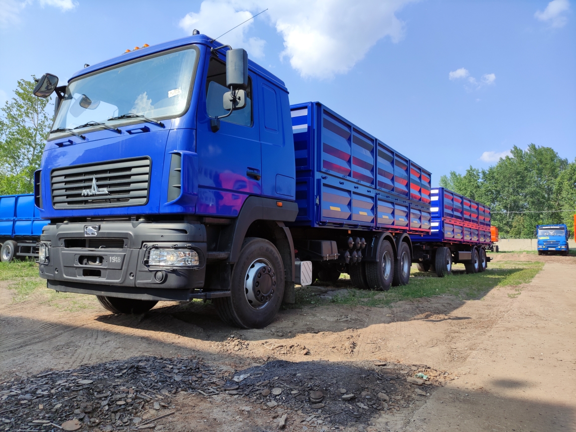 огрузка партии автопоездов сельхозников на базе шасии МАЗ 65012J